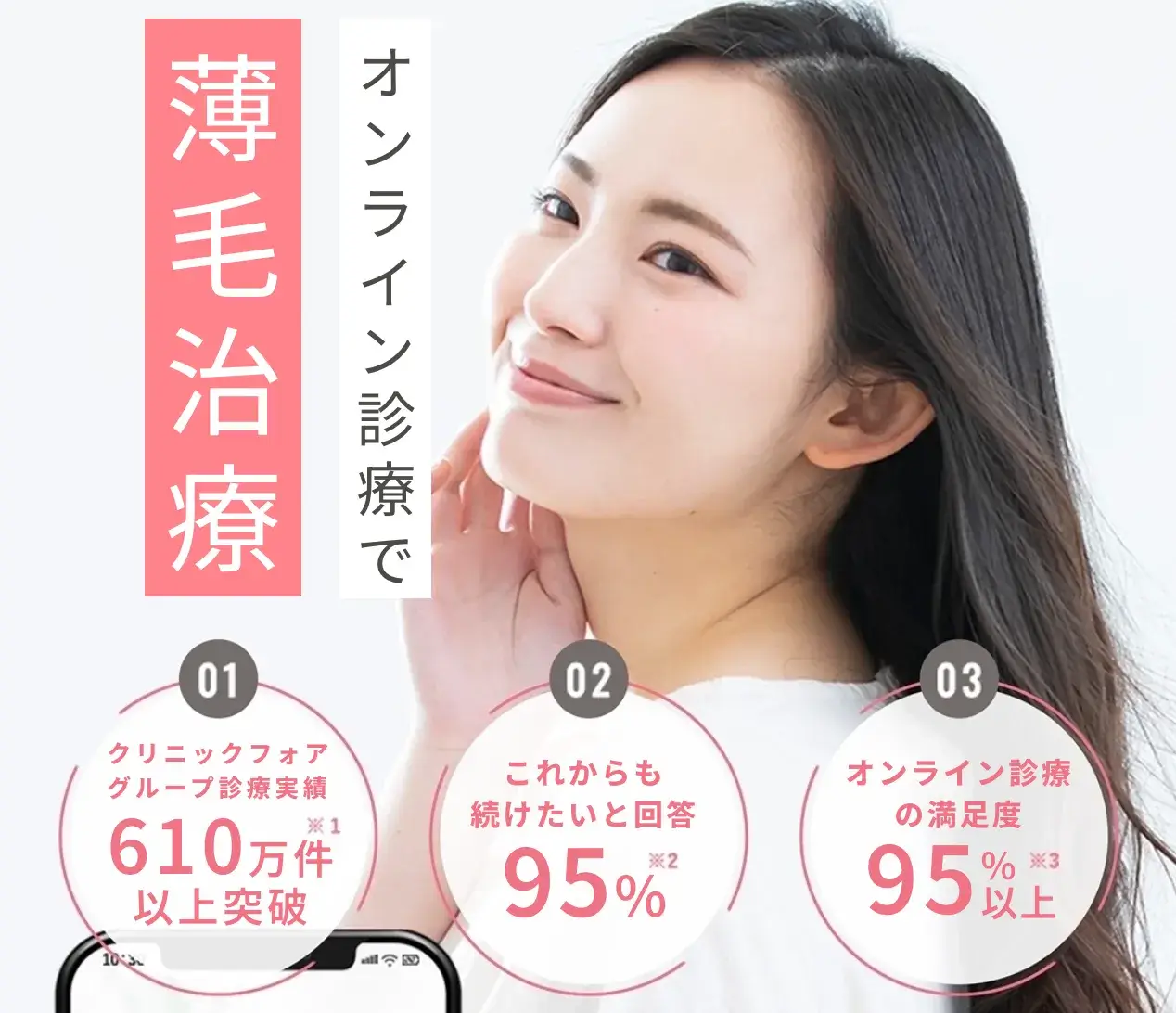 クリニックフォアは、オンライン診療と対面診療の両方に対応しているAGA専門クリニックです。